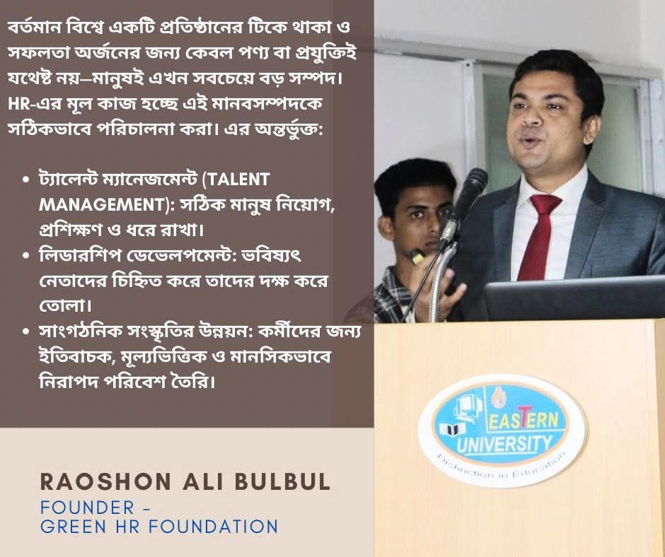 বর্তমান বিশ্বে একটি প্রতিষ্ঠানের টিকে থাকা ও সফলতা অর্জনের জন্য কেবল পণ্য বা প্রযুক্তিই যথেষ্ট নয়—মানুষই এখন সবচেয়ে বড় সম্পদ।