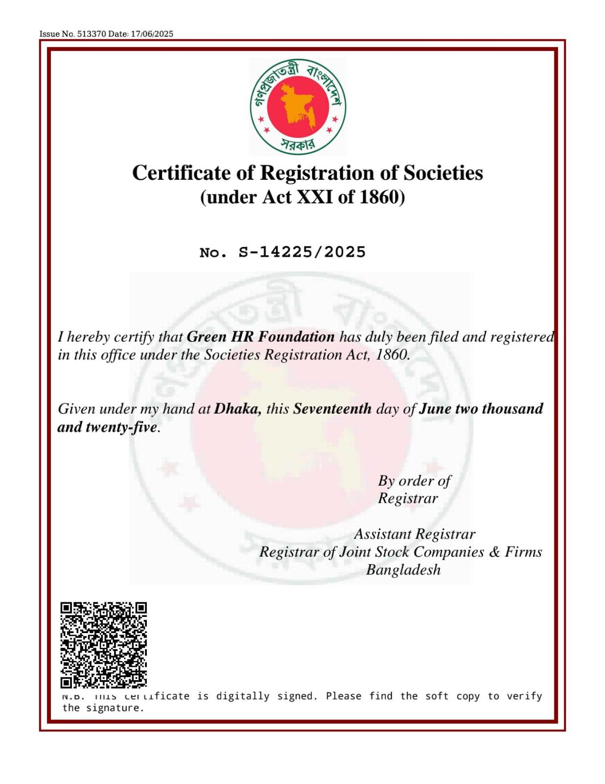 আরো বৃহৎ পরিসরে ও কাঠামোবদ্ধভাবে কাজ করার প্রত্যয়ে Green HR Professionals' Bangladesh এখন থেকে Foundation-এর মাধ্যমে আমাদের কার্যক্রম চালু করেছি। সরকারের রেজিস্ট্রেশনপ্রাপ্ত এই ফাউন্ডেশন আমাদের আগামীর কর্মকৌশলকে করবে আরও বিস্তৃত, সংগঠিত ও প্রভাবশালী।